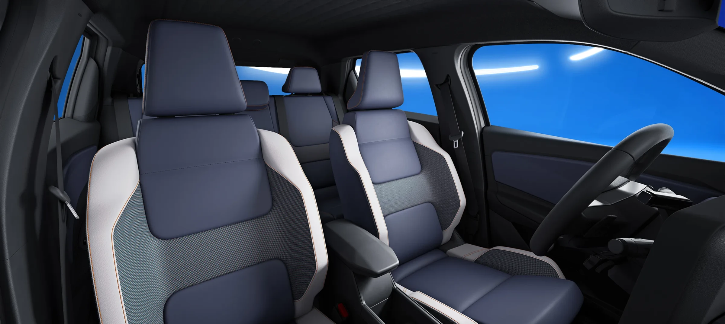 KJØR MED STILVelg mellom tre elegante interiørdesign, bestående av resirkulerte tekstiler og syntetisk skinn.(5). |